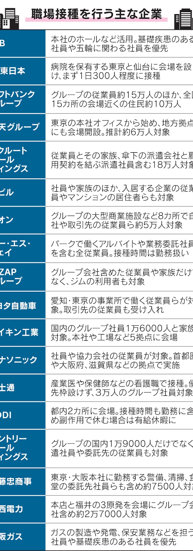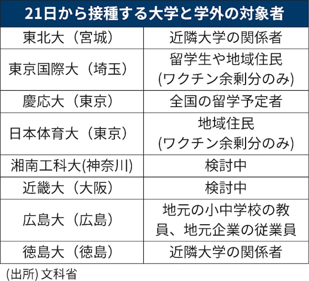 来週からは、職場接種に加え、大学での接種も始まります。「17日正午時点で全国の261大学が同省に相談し、174大学が既に実施に必要な申請を済ませた」とのこと。